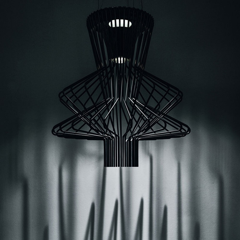 Una forma muy especial de caracterizar e iluminar un espacio, las lámparas Allegro son un concepto que une efecto luminoso y diseño gráfico. De la intersección de dos formas distintas nace la lámpara de suspensión Allegro Ritmico, caracterizada por un tecnológico acabado grafito.