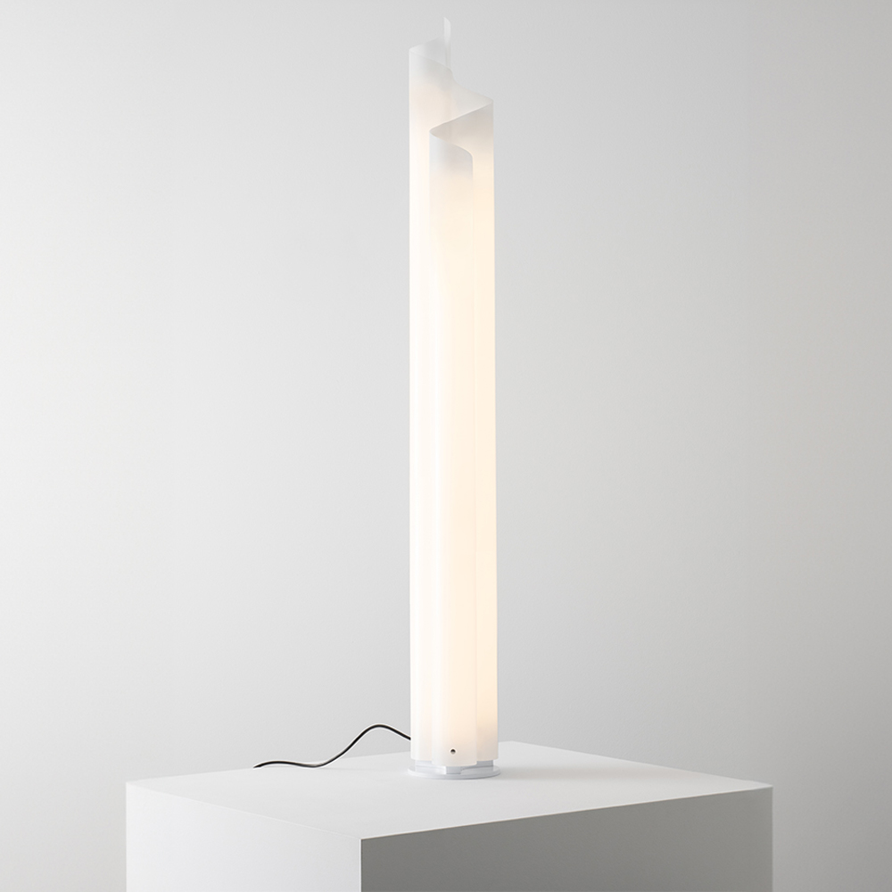Base de metal pintado blanco; estructura / difusor de metacrilato blanco opal curvado en caliente.