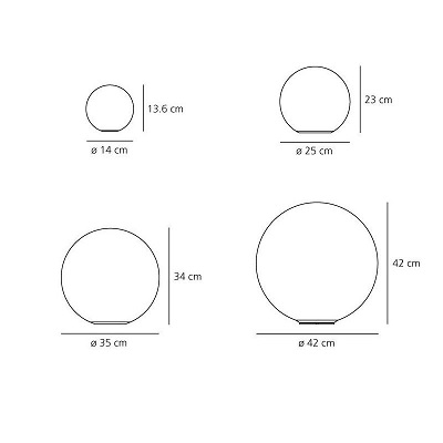 Dioscuri es una luminaria de mesa con forma de bola, en vidrio soplado, policarbonato y acero que disipa una luz cálida.