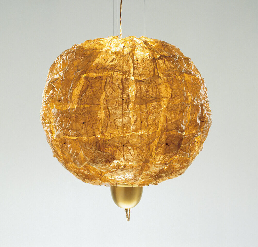 Concebida para la restauración del Liceo, el gran teatro de la ópera de Barcelona, esta lámpara contiene un gran foco de luz en su parte inferior que proyecta hacia arriba mucha iluminación indirecta. La lámpara Liceo es una vistosa flor de fuego, que viste de gala los espacios más circunspectos.