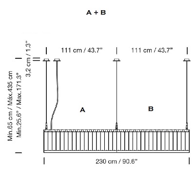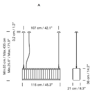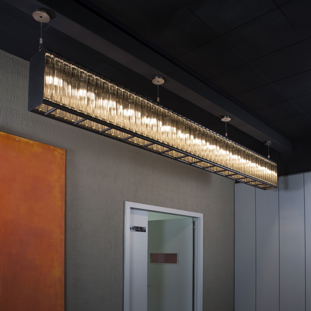 Versión lineal de la lámpara Estadio que conserva su recia estructura metálica y las pantallas creadas con vidrio pavés para su inconfundible presencia. Concebida originalmente para el Estadio Olímpico de Barcelona 1992, la familia Estadio se completa con las grandes lámparas de suspensión circulares y con el aplique de pared.
