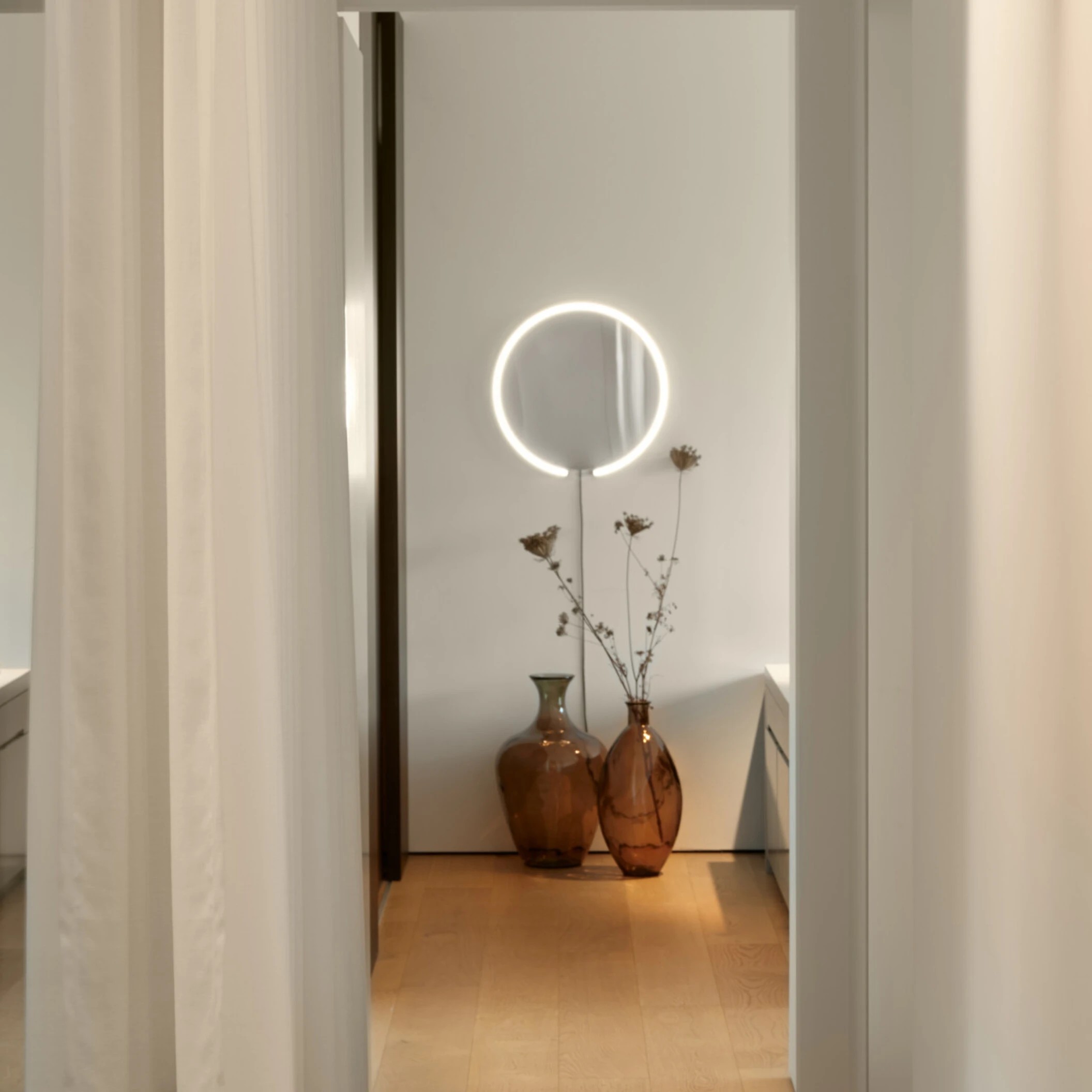 Mito Sfera Corda llama literalmente la atención. Es el toque final perfecto antes de salir hacia el restaurante o la oficina. Gracias a su cable de alta calidad con enchufe, puedes colocar Mito Sfera Corda en el lugar ideal para echarte un último vistazo al espejo. Así podrás disfrutar de su innovadora tecnología de iluminación y de su diseño de formas perfectas en cualquier rincón de tu hogar.
