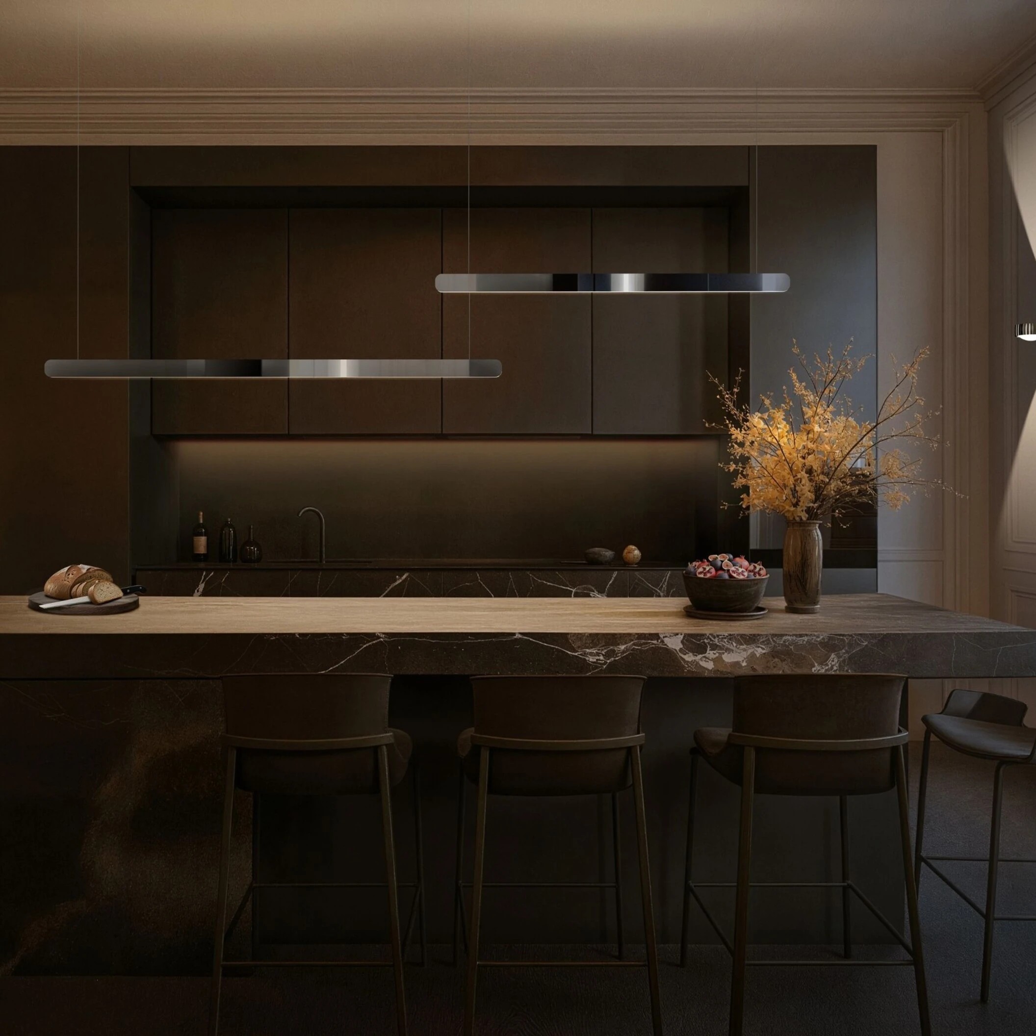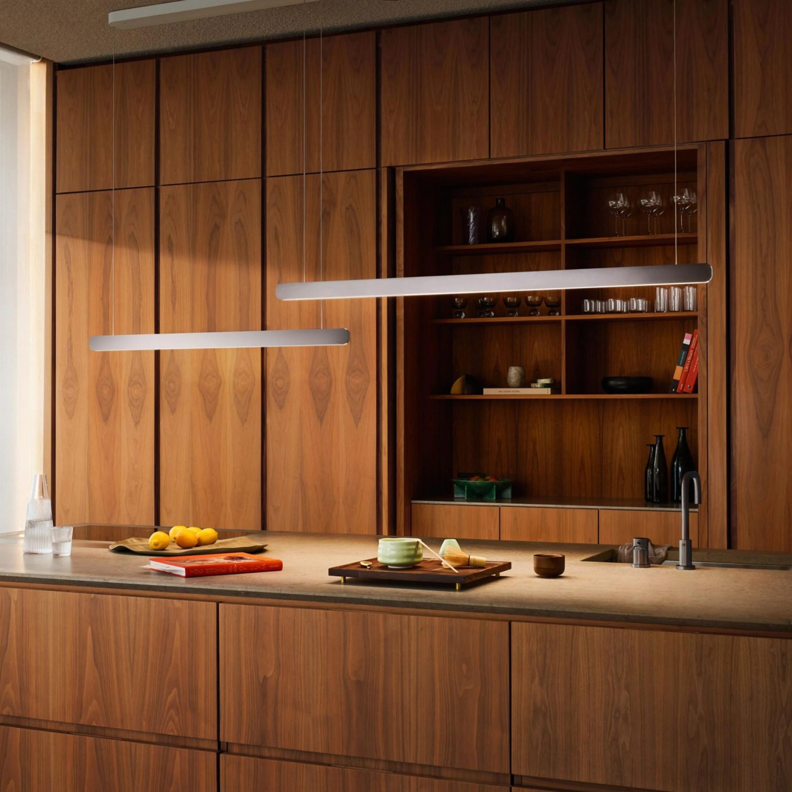Mito Volo reinventa la lámpara colgante. De líneas radicalmente rectas, cuidada hasta el más mínimo detalle, con ajuste continuo de la altura bajo pedido y una potente iluminación ascendente y descendente que se puede controlar de forma intuitiva con gestos o a través de una aplicación: gracias a estas brillantes características, Mito Volo crea la luz perfecta para cada situación, permitiéndote disfrutar al máximo del ambiente, de la estancia y del momento.
