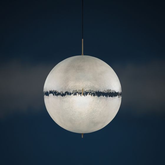 Difusor natural en fibra de vidrio pintado a mano amarillo, azul, rojo, blanco. Su forma permite que la luz interactúe simultáneamente con el color y la forma, dando un juego de contrastes y transparencias.