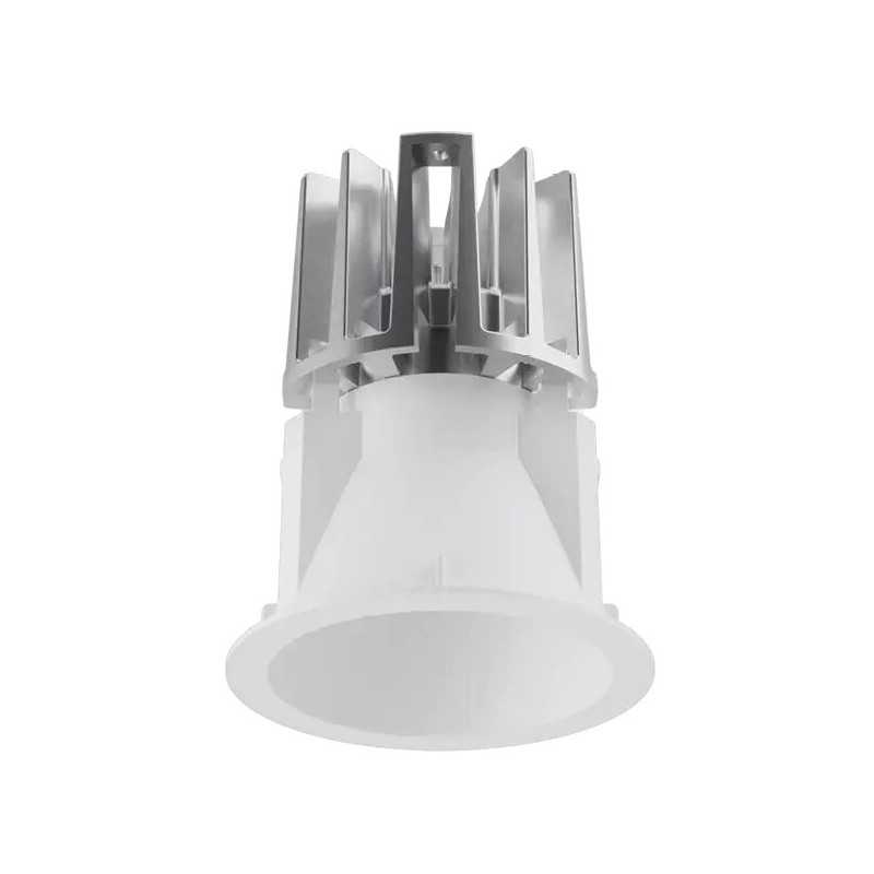 Downlight con una brida fina que armoniza con el falso techo: su forma se ha concebido para optimizar la eficiencia luminosa específicamente al asegurar al mismo tiempo un confort visual óptimo. El downlight Warp se ha pensado para obtener un equilibrio perfecto entre estética y funcionalidad. El vano óptico, en el acabado doble gofrado o en oro “warm & chic”, es un plus de valor estético. Su forma se ha concebido para optimizar la eficiencia luminosa mientras que una fuente power LED o array LED asegura un confort visual óptimo. Warp resulta especialmente idóneo para iluminar puntos de venta, estructuras de hostelería y residencias particulares.